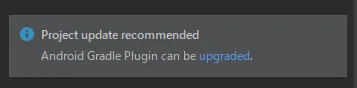 PCを乗り換えてAndroid Studioをインストールし、GitHubから既存のプロジェクトをクローンして開いてみると、Android Gradle Pluginがアップデートできるよという表示が出ていました。