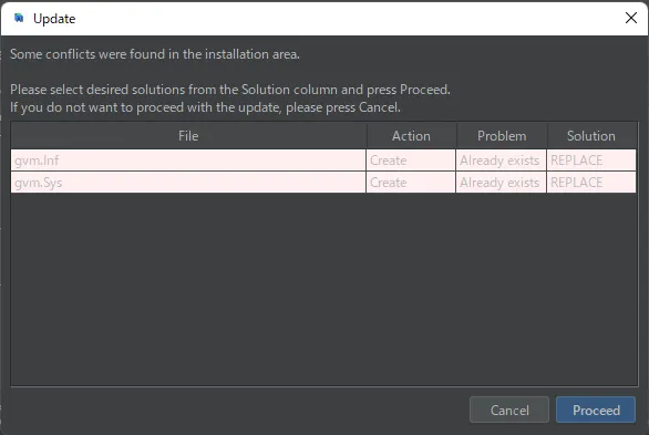 またコンフリクトが!私、何か悪いことしましたか?「Proceed」をクリック。