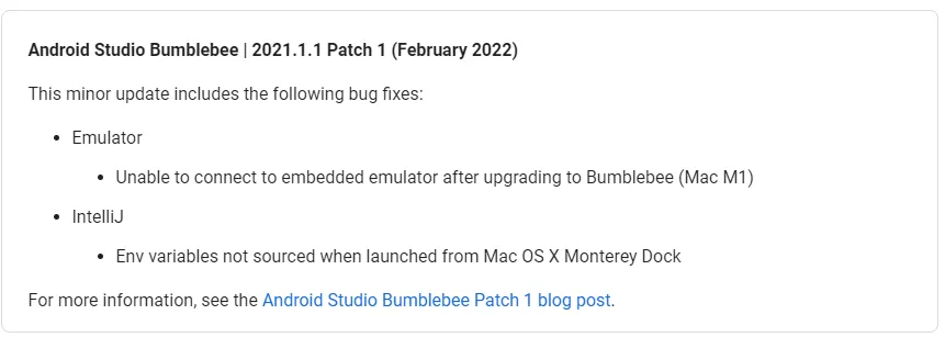 https://androidstudio.googleblog.com/2022/02/android-studio-bumblebee-202111-patch-1.html