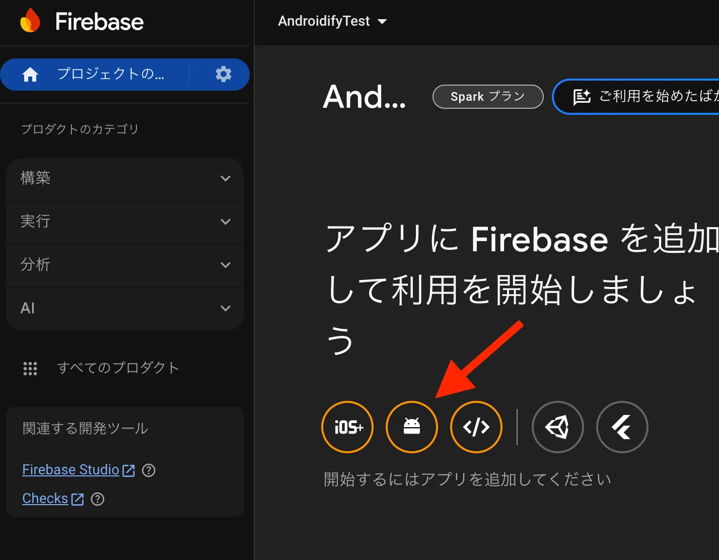 画面の指示に従って、設定を進めていきます。GeminiやAnalyticsを有効にするかどうか聞かれますが、どちらでも構いません。プロジェクトが作成できたら、プロジェクトのホーム画面でAndroidアプリを追加します。