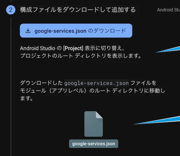 google-services.jsonをダウンロードして、Androidifyアプリプロジェクトのappディレクトリの下にあるgoogle-services.jsonファイルを置き換えます。これで手元でビルドしているアプリとFirebaseのプロジェクトが関連づけられます。