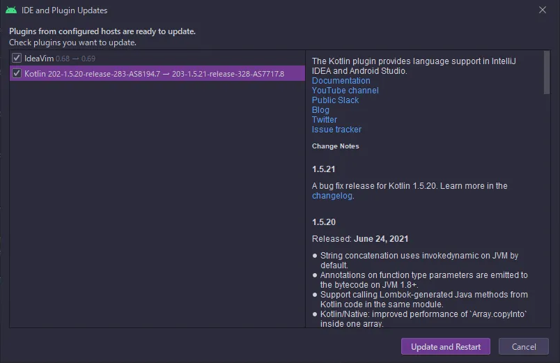 Kotlin pluginのバージョンも合わせて更新されました。1.5.21になりました。1.5.20との違いはバグフィックスとのことなので、利用上の大きな変更はなさそうです。