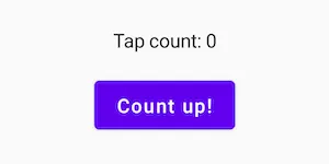Column( modifier = Modifier.fillMaxSize(), horizontalAlignment = Alignment.CenterHorizontally) { var count by remember { mutableStateOf(0) } Text( text = "Tap count: $count", modifier = Modifier.padding(20.dp) ) Button( onClick = { count++ } ) { Text(text = "Count up!") }}