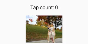 Column( modifier = Modifier.fillMaxSize(), horizontalAlignment = Alignment.CenterHorizontally) { var count by remember { mutableStateOf(0)} Text( text = "Tap count: $count", modifier = Modifier.padding(10.dp) ) Image( painter = painterResource(id = R.drawable.dog), contentDescription = null, modifier = Modifier.size(100.dp).clickable { count++ } )}