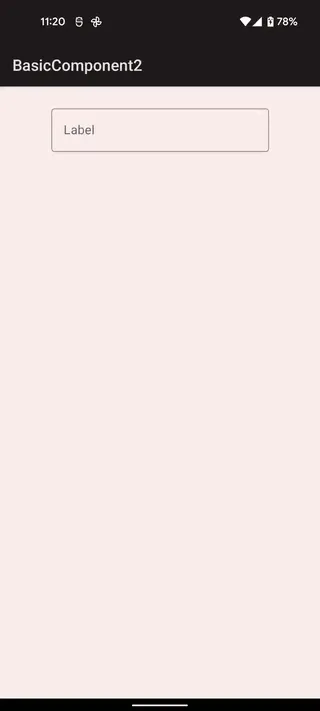 Box( modifier = Modifier.fillMaxSize(), contentAlignment = Alignment.TopCenter) { var text by remember { mutableStateOf("") } OutlinedTextField( value = text, onValueChange = { text = it }, modifier = Modifier.padding(20.dp), label = { Text(text = "Label") }, placeholder = { Text(text = "Placeholder")} )}