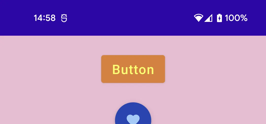 TestAppTheme { Surface( modifier = Modifier.fillMaxSize(), color = MaterialTheme.colors.background ) { Column( verticalArrangement = Arrangement.spacedBy(30.dp), horizontalAlignment = Alignment.CenterHorizontally, modifier = Modifier.padding(30.dp) ) { Button(onClick = {}) { Text( text = "Button", fontSize = 20.sp ) } FloatingActionButton( onClick = {}, ) { Icon( imageVector = Icons.Filled.Favorite, contentDescription = null ) } Card( modifier = Modifier.fillMaxWidth() .height(60.dp) ) { Text( text = "Text on Card", fontSize = 30.sp, textAlign = TextAlign.Center ) } Text( text = "Text on background", fontSize = 30.sp ) } }}