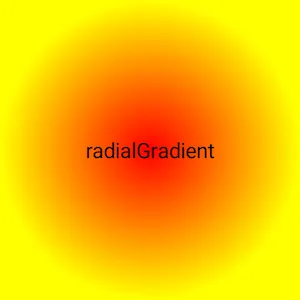 Box( modifier = Modifier .background(Brush.radialGradient( colors = listOf(Color.Red, Color.Yellow) )), contentAlignment = Alignment.Center,) { Text("radialGradient")}