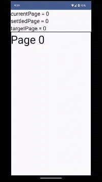 Pagerintends to settle to. During fling or animated scroll (fromanimateScrollToPagethis will represent the page this pager intends to settle to. When no scroll is ongoing, this will be equal tocurrentPage.(このページャーが移動しようとするページ。フライングまたはアニメーションスクロールの間(animateScrollToPageから)、これはこのページャーが落ち着く予定のページを表します。スクロールが進行していないとき、これはcurrentPageと同じになります。※DeepL訳)