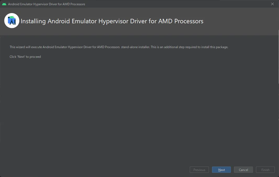 AMD用のHypervisor Driverのインストールのダイアログがさらに開きましたので、「Next」をクリック。