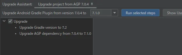 Upgrade Assistantが表示されるので、「Run selected steps」をクリック。