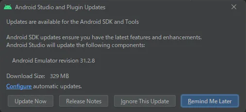 Android Studioのアップデートは、通常はAndroid Studio内から実行できます。ただ今回は、Twitterの「Blublebeeの安定版からの更新にはFull downloadを提供する」という発言が気になりますが、、、