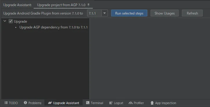 次にGradle Plugin。Begin Upgrade.