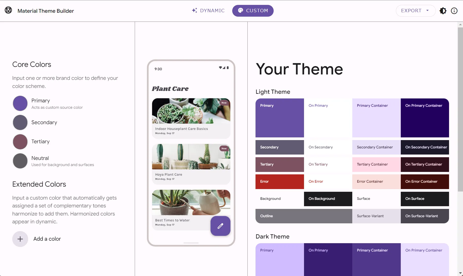 https://material-foundation.github.io/material-theme-builder/#/custom