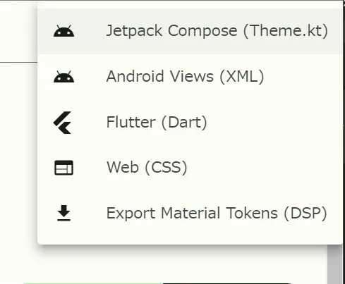 希望のカラースキームができたら、右上の「EXPORT」をクリックし、Jetpack Composeをクリックすると、zipファイルをダウンロードできます。