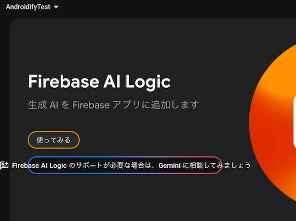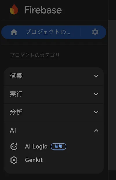 再びFirebaseのプロジェクトで作業します。「AI Logic」をクリックします。