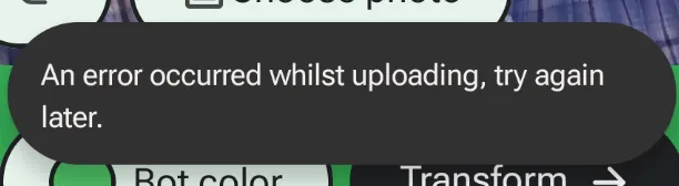 しかしこのままだと、写真を撮って「Transform」をタップしても、エラーが表示されてドロイドくんは生成されません。