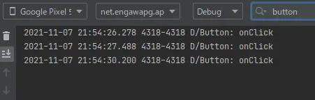 Button( onClick = { Log.d("Button", "onClick") }) { Text(text = "Button")}
