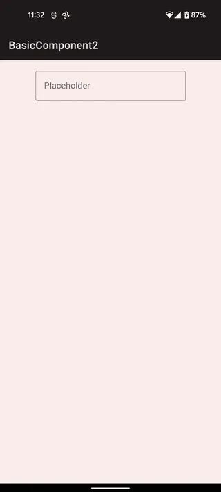 placeholderは、TextFieldが空欄の時に表示する入力例です。lebelと同様にコンポーザブル関数を渡しますが、多くの場合はTextでよいと思います。placeholderの場合はlabelと違って、文字を入力すると消えます。