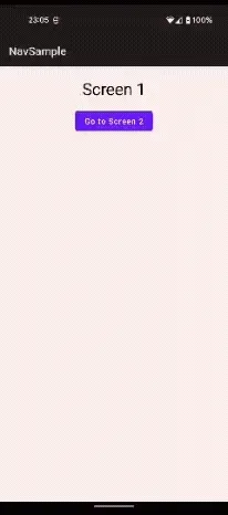 setContent { val navController = rememberNavController() NavHost(navController = navController, startDestination = "screen1") { composable(route = "screen1") { Screen1 { text, id -> navController.navigate("screen2/$text/$id") } } composable( route = "screen2/{text}/{id}", arguments = listOf( navArgument("text") { type = NavType.StringType }, navArgument("id") { type = NavType.IntType }, ) ) { backStackEntry -> val text = backStackEntry.arguments?.getString("text") ?: "" val id = backStackEntry.arguments?.getInt("id") ?: 0 Screen2(text, id) { navController.navigateUp() } } }}各画面の実装は以下のようになります。