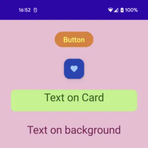 Material Theme Builderでは指定した色そのままではなくてちょっと鮮やかさを抑えた色がPrimaryになるので、全体的にちょっと地味になってしまいますね。ボタンではなくコンテンツを目立たせるには、これくらいのほうがいいのかもしれませんが、アプリの内容によってはもう少しアクセントの効いた色が欲しくなる気もします。この辺りは調整次第だと思います。