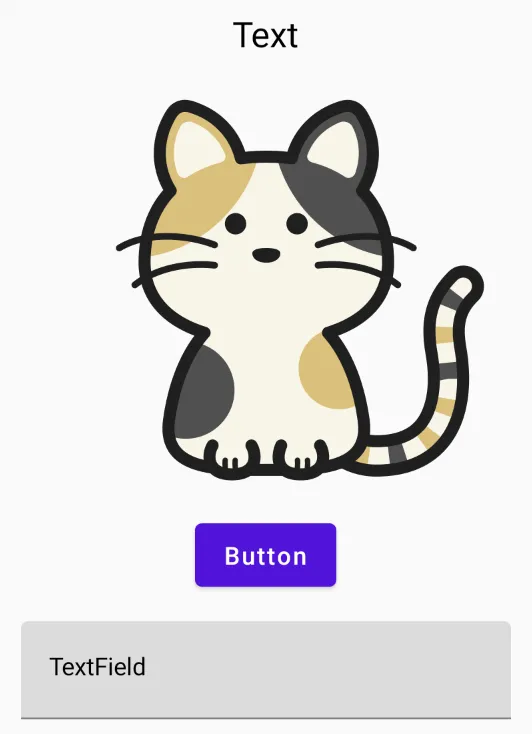 Textは文字列を表示するコンポーネントで、従来のViewシステムのTextViewに相当します。Imageは画像を表示するコンポーネントで、ImageViewに相当します。Buttonはその名の通りボタンのコンポーネントで、ViewシステムでもButtonというコンポーネントがありました。名前は同じですが、Jetpack ComponentのButtonとViewのサブクラスのButtonは全く別のものです。TextFieldは編集可能な文字列を表示するコンポーネントで、EditTextに相当します。