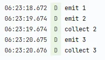 init { viewModelScope.launch { delay(1500) sharedFlow.onEach { Log.d("FlowSample", "collect $it") }.collect() } viewModelScope.launch { repeat(3) { delay(1000) Log.d("FlowSample", "emit $emitValue") sharedFlow.emit(emitValue) emitValue++ } }}
